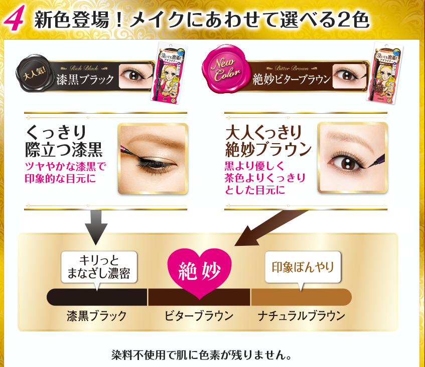 – Kiss Me Heroine Make nổi tiếng với đầu mảnh như 1 sợi tơ, chỉ có 0.1mm nên các đường liner tự nhiên và cực kì dễ vẽ. Các nàng mí mắt không to chỉ thích vẽ liner mảnh thì sản phẩm này là sự lựa chọn tuyệt vời, còn các cô nàng thích liner đậm và sắc nét thì chỉ cần kẻ nhiều nét nhỏ là ra nét to, yên tâm đó vẫn sẽ là những đường liner “đỉnh cao” vì nét mực ra rất đều, đen nhánh và bám mi lắm luôn, không lem không trôi, ngủ 1 giấc dậy mi mắt vẫn nguyên đường liner không xê dịch nha.