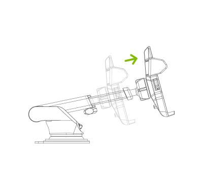 Điều chỉnh tấm đỡ ở bất kỳ góc nghiêng nào với khớp nối trục dạng hình cầu sau đó chốt chặt bằng vòng chặn mặt sau tấm đỡ.