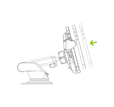 Đặt điện thoại của bạn vào giá một cách kiên quyết để kích hoạt hệ thống khóa một chạm (ấn mặt lưng điện thoại tì mạnh lên nút bấm kích hoạt một chạm).