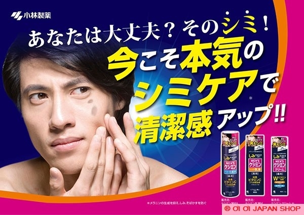 👉 “Keshimine dành cho nam giới” tập trung vào “các biện pháp đối phó với các vết đốm, tàn nhang,..” cho nam giới. Bộ sản phẩm chăm sóc da chống lại các vết đốm, tàn nhang,… được đưa ra dành ch nam từ dòng sản phẩm “Kesimine” của phụ nữ.